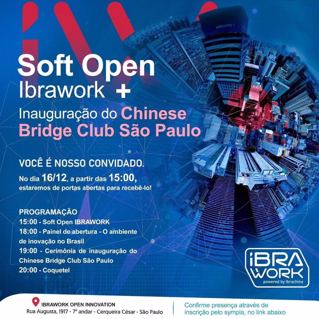 Nesta quinta-feira, dia 16 de dezembro, o Ibrachina realizou o evento de inauguração do Ibrawork, hub de Open Innovation e Coworking, e do Chineses Bridge Club, ambos sediados no mesmo prédio, na Rua Augusta, 1917.