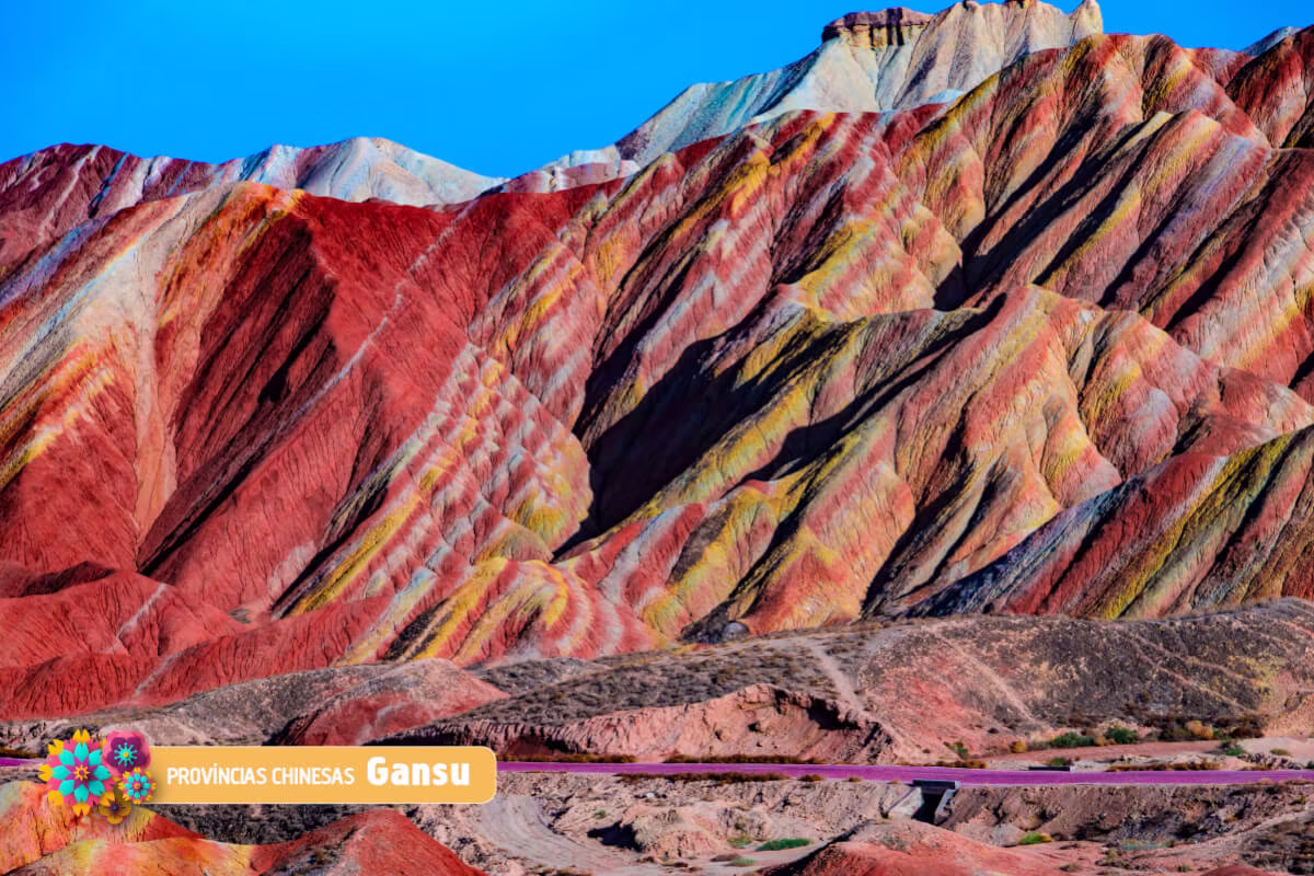 O local mais conhecido de Gansu é o famoso Parque das Montanhas Coloridas, cujo nome oficial é Parque Geológico Nacional Zhangye Danxia. As montanhas possuem uma geomorfologia única, que é encontrada apenas na China.