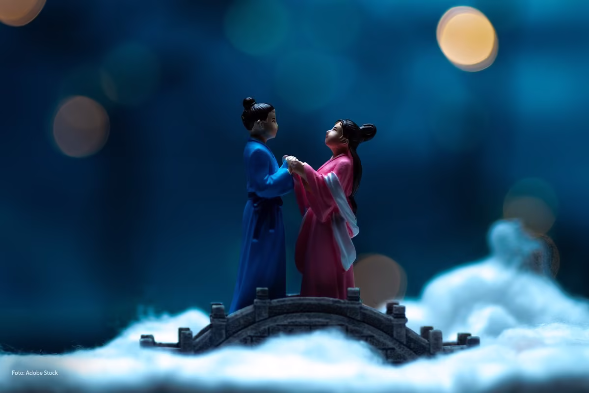 Segundo a tradição, sua origem está ligada à lenda da Tecelã e do Vaqueiro. Eles decidiram viver juntos, mas foram impedidos porque a tecelã (Zhinü) era uma divindade celeste, sétima filha da Rainha Mãe do Céu, que não aceitou o envolvimento da filha com um vaqueiro (Niúláng) mortal e pobre.