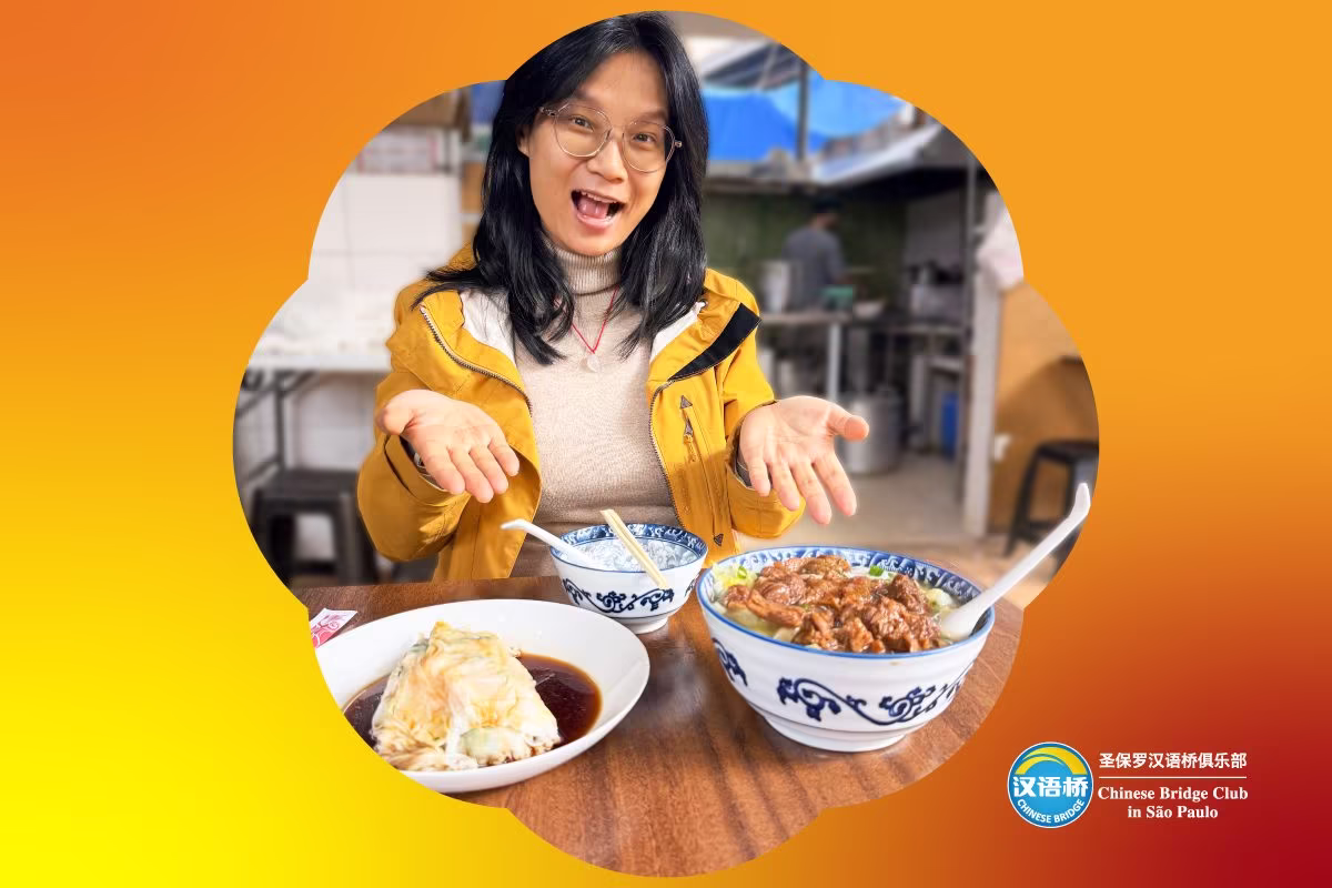 Experimentou pratos a base de macarrão de arroz. O chang fen foi servido com camarão e o niuzá fen, com carne suína. Jiang mostra como é possível viver uma viagem gastronômica sem sair da capital de São Paulo.